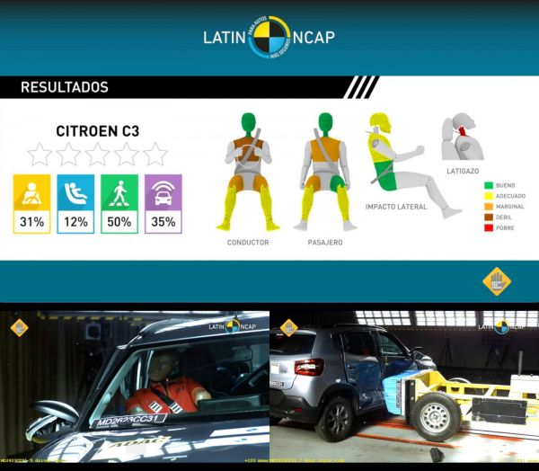 2021 végén mutatták be a kifejezetten fejlődő országok piacaira készített Citroën C3-ast, amely eltér az európai modelltől. Most a Latin NCAP törésteszt-program keretében vizsgálták a Brazíliában gyártott változatot, ahol 0 csillagos eredményt ért el a kisautó. A jármű alapfelszereltségébe tartozik 2 légzsák és a menetstabilizáló, a Felnőttvédelem 12,10%-os lett, a Gyermekvédelem 49,74%-os, a Gyalogsvédelem 34,88%-os.