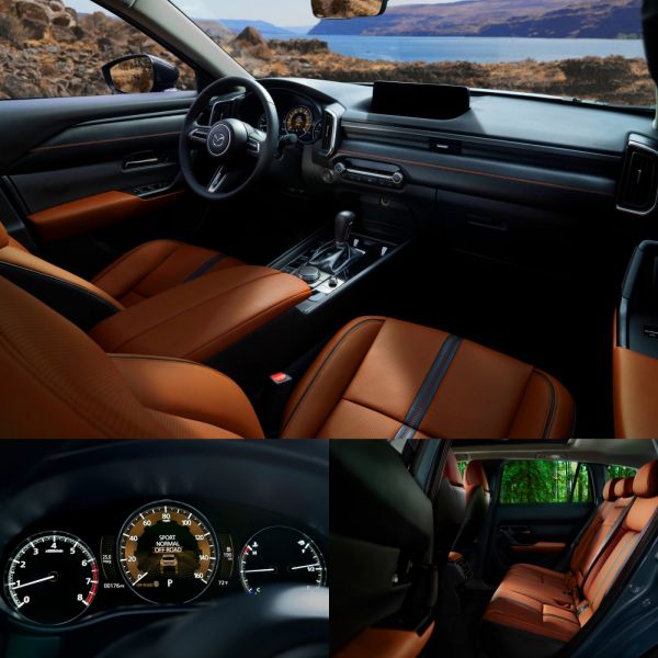 Pontos méretek helyett csak annyit mondanak, hogy nagyjából olyan hosszú a CX-50, mint a CX-5-ös, de annál szélesebb és alacsonyabb, a hasmagassága viszont nagyobb. A terepképességek javítása érdekében nagyobb teherbírású összkerékhajtást (nagyobb átmérőjű tengelykapcsoló küldi hátra a nyomatékot) és elektronikus beavatkozókat kap a típus, igaz, a lejtmeneti fékszabályozást elhagyták, mert a mérnökök szerint a jobb pedálérzettel a vezető is képes lesz ugyanerre. A G-Vectoring rendszerben lesz vontatás- és terepmód is, utóbbiban például megemelik az alapjárati fordulatot, de módosítják a fékbeavatkozást is. A hátsó oldalajtók különösen nagy szögben tárulnak fel, ami nem csak az utastér megközelítését javítja, de a nagy teherbírású tetőcsomagtartóhoz való hozzáférést, azaz a küszöbre fellépést könnyíti meg.