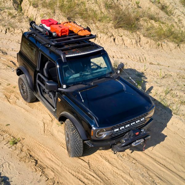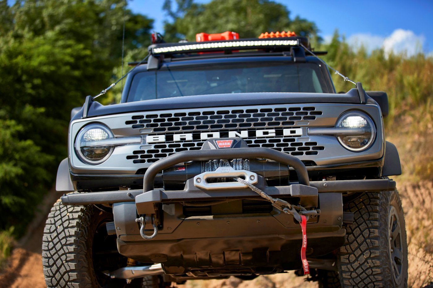 A Bronco Two-Door Trail Rig (fekete) a legkeményebb terepjáró, amit csak az alvázas modellből meg lehet építeni – ennél csak gyári kiegészítőket használtak. A Badlands modellből indultak ki, ezen felül a Ford Performance moduláris első lökhárítója, csörlő, csőajtók, LED-es fényrúd, LED-es keresőfények, tetőcsomagtartó, homoktrepnik, az oldalra nyíló hátsó ajtóra szerelt asztal van a fedélzeten.