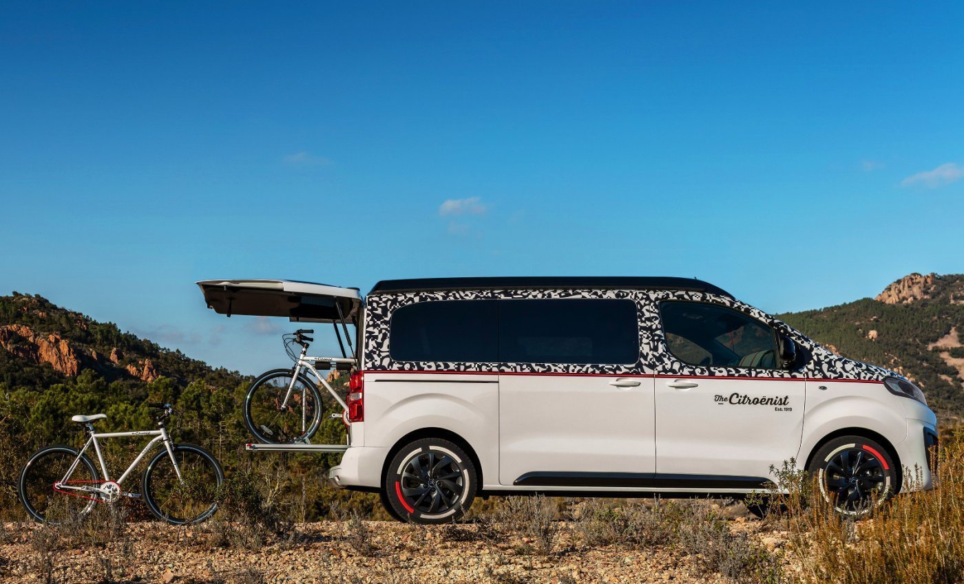 Az üléselrendezés rendhagyó, a két első ülés mögött a jobb oldalon van egy-egy fotel, így a baloldalon kényelmesen lehet szállítani a kerékpárokat. A tetőből lehajtható monitoron lehet internetezni vagy TV-t nézni. A „Rider The Citroënist by Martone” kerékpárt egyébként 950 euróért árulják, a SpaceTourer Citroënist lakóautó egyedi darab.