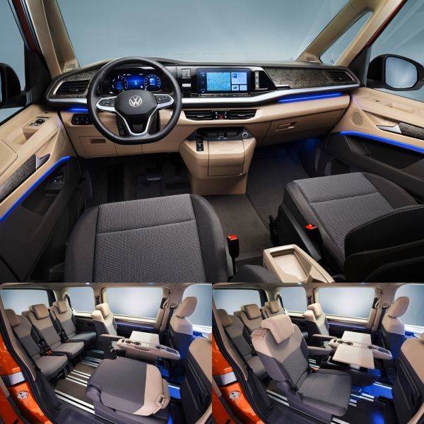 A piaci bevezetésnél 1,5 literes (136 LE) és 2,0 literes (204 LE) benzines turbómotorral lesz választható a Volkswagen Multivan, alternatívaként az 1,4-es turbómotort használó, 218 LE rendszerteljesítményű plug-in hibrid hajtást kínálják; az akku-kapacitás 13 kWh, az elektromos hatótávolságot még nem árulták el. A TDI-rajongóknak majd később teszik elérhetővé a 2,0 literes, 150 lóerős négyhengerest. Alapáron jár a teljesen digitális belső (10,25 col a kormány mögött, 10 colos érintőképernyő középen), fel-a-fejjel kijelző is kérhető.