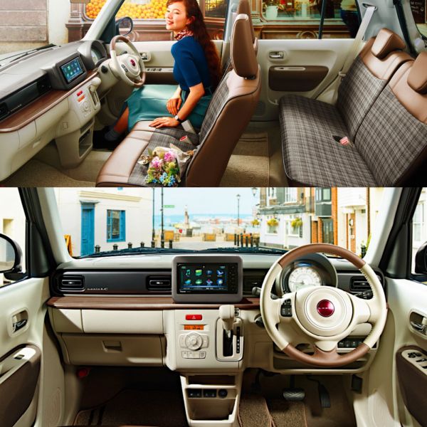 A fehér dísztárcsákkal, a pasztellszíneket is tartalmazó palettával erősítenek rá a retrós megjelenésre, nagy méretű krómozott jelvény kerül a csomagtérfedélre. Az utastérben egyedi a színvilág (barna és fehér) és a kárpit (barna pepita szövet és csokoládé színű műbőr), és a szürke díszek helyett fafóliával borított betétek is választhatóak. A Suzuki Alto Lapin LC 63 lóerős turbómotort és CVT váltót kap, első- és összkerékhajtás közül lehet választani, az indulóár 1 409 100 jen (4 millió Ft).