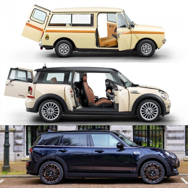 1969-ben az első Mini Clubman a tervező Roy Haynes szavaival élve „egyként lettek megcáfolva azok a tévhitek, amelyek szerint funkcionálisak csak a csúnya dolgok lehetnek”, az osztott hátsó ajtós, nyújtott modell 1981-ig maradt a kínálatban. 2007-ben jött a második generáció, aszimmetrikus karosszériával – a jobb oldalon egymással szembe nyíló 2 ajtó –, 2015-ben érkezett a máig megvásárolható, immár 4,25 méter hosszú kombi.