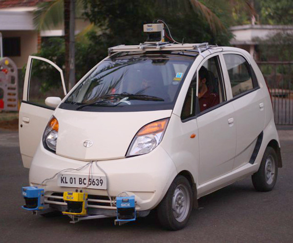Több okból is ideális választásnak bizonyult a Tata Nano, a farmotoro felépítés miatt bőven volt hely az érzékelőknek a kocsi orrában – első körben még a lökhárítón kívül helyezkedtek el a radaros letapogatók, idő közben már eltüntették azokat -, illetve a kis teljesítmény miatt biztonságosan, megfontolt tempóban képes haladni az autó. A legnagyobb kihívást az jelentette, hogy a fejlesztés megindulásakor még csak kézi váltós Nano létezett, ezért először is robotváltóssá kellett alakítani a kocsit, a robotautó elektronikájának beépítése és működőképessé tétele ezt követően már gyerekjáték volt.