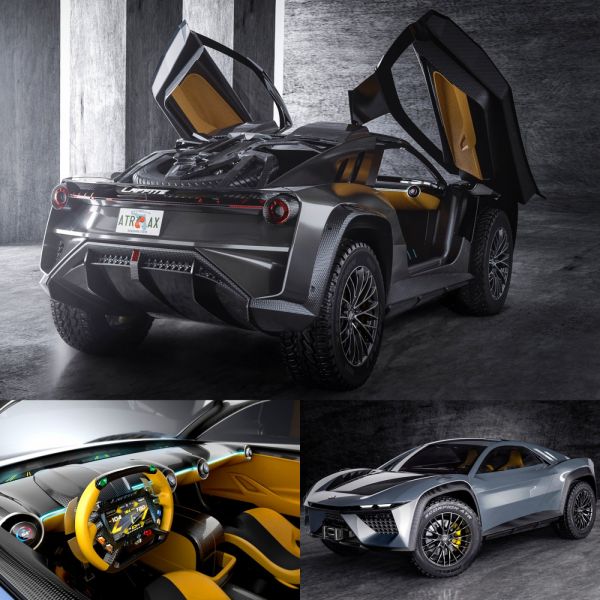 Elsőként 2024 márciusában az Atrax nevű szabadidő-autót dobják piacra, ez valójában egy fokozott terepképességű szuperautó, amelyért 1,69 millió dollárt kérnek és 26 példányt fognak építeni. A rendszerteljesítmény 1167 LE/2500 Nm, ami a 2,2 tonnás autót 3,8 másodperc alatt gyorsítja 100 km/órás tempóra, a végsebesség elektronikusan limitált 240 km/óra. Hatótávolságnak 400 km-t mondanak, a 350 kW-os villámtöltéssel 22 perc alatt érhető el a 80%-os töltöttségi szint. A hasmagasságot hidraulikus rendszerrel lehet emelni, 2 fokozatú váltón keresztül hajtanak a villanymotorok, a vezetőülés rögzített, a kormány és a pedálok mozgatásával lehet beállítani az ideális vezetési pozíciót. A normál kivitel jelen esetben terepmintás abroncsokat jelent, az opciós Stradale kivitelt aszfaltutakon való közlekedésre hangolják.