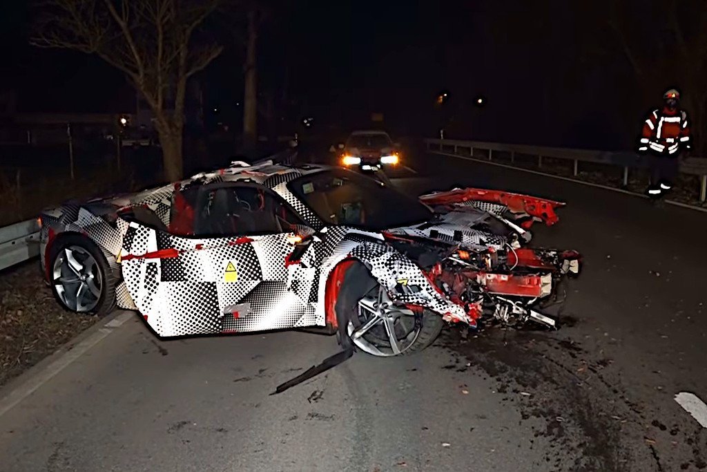 A rendőrség vizsgálja a baleset körülményeit, amelyben Sinsheim közelében egy teljesen álcázott Ferrari prototípust tört ripityára annak vezetője. Fagypont alatt volt a hőmérséklet a baleset bekövetkeztekor, de egyenes útszakaszon veszítette el uralmát a sofőr az autó fölött, ami aztán többször megpördült és mintegy 200 méter hosszan többször is becsapódott a szalagkorlátba. Teljesen megsemmisült az autó, a sofőr sérülések nélkül megúszta az esetet, más autó nem volt részese az ütközésnek. Az érintett útszakaszt több órára le kellett zárni, hogy az úttestet 200 méter hosszon beborító törmelékeket eltakarítsák.