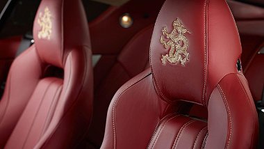 Három külső szín – piros, bordó és pezsgő metál – és ehhez passzoló belső kárpit kérhető, a fejtámlákba hímezett sárkányokkal, plusz van még egy apró plakett a váltókarnál a sorszámmal. Említést érdemel még a 24 karátos arannyal bevont márkajelzés az autó elején.