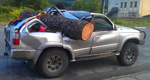 Amikor a felhőszakadás elvonult, a tűzoltóktól kértek segítséget, de miután megtudták, hogy emberéletben nem esett kár és nincsenek sérültek sem, hátra sorolták őket, és azt közölték, nem tudják, mikor érnek oda. Ők azonban nem akartak várni, felhívták néhány ismerősüket, akik láncfűrészekkel siettek a segítségükre, és levágták a fatörzs túllógó részeit. A Toyota 4Runner ezt követően beindult, és saját lábán jutott vissza a civilizációba. Nem csoda, a tetőlemezben legfeljebb a belső világítás elektromos vezetékei mennek, amelyek megszakadása nem befolyásolja az alvázas felépítésű jármű működését. Azért érdekes dolog nézni az alábbi videón, hogy halad a faszállító Toyota.