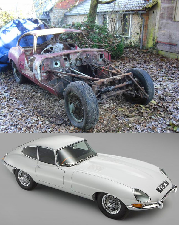 Az első szériás, 3,8 literes hathengeres motorral szerelt kupét a bridgnorthi Classic Motor Cars műhely gondjára bízták, ahol aztán mintegy 3000 munkaórával sikerült újra helyreállítani – a gyári dokumentumok alapján tudták, hogyan is nézett ki eredetileg. Azért is szükség volt a Jaguar segítségére, mert a brit nyilvántartásban ennek az autónak az alvázszámát már használta egy másik E-Type – annak a tulajdonosa biztos nem volt boldog, de az legyen az ő baja, hogy tisztázatlan előéletű járművet vásárolt.