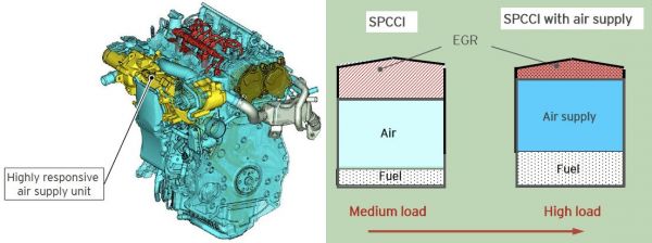 Az első, kompressziógyújtással üzemelő kereskedelmi forgalomban kapható benzinmotorról van szó, amelyet azért sikerült megvalósítani, mert a Mazda mérnökeinek sikerült kiszélesíteni a „szikra által szabályozott kompressziós gyújtás” üzemtartományt, tehát finomabb az átmenet a szikragyújtás és a kompressziógyújtás között.