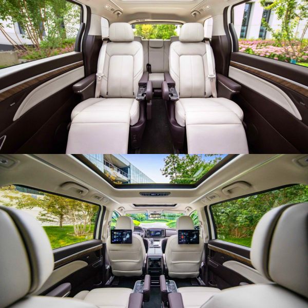Már a 2020-as Pekingi Autószalonon bemutatáskor is egy képernyőkkel és kényelmes fotellel felszerelt belsővel lehetett megismerni a kínai GAC konszern Trumpchi márkájának M8-as egyterűjét, azonban most kiderült, hogy még ezt is lehet tovább fokozni. Az új csúcsmodellnél két darab, gombnyomásra ággyá alakuló hatalmas fotelt építenek a hátsó részbe, az utasteret a vezetőfülkétől elválasztó falat pedig megtöltik monitorokkal – az óriási tv alatt több képernyőből állítanak össze egy csíkszerűt, és akkor ott van még egy érintőképernyő a két ülés közötti konzol végén a vezérlésre.