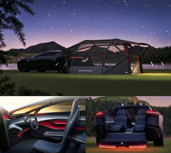 Sportkocsisan lendületes az Italdesign Quintessenza megjelenése, a kocsi orrában lévő teret aerodinamikai elemek és egy kis méretű zárt csomagtér tölti meg. A karosszéria hossza 5640 mm, a szélesség 2200 mm, a magasság mindössze 1580 mm, a tengelytávolság 3240 mm; a kerékjáratokba 24 colos felniket tettek terepmintás abroncsokkal. A hatalmas méretű, elektromosan mozgatott ajtókat az A oszlophoz rögzítették, ezeken keresztül lehet hozzáférni a tágas, 4 személyes utastérhez. A második sor ülései hátrafordíthatóak, és a platón mint kényelmes napozófedélzeten lehet pihenni, vagy épp ha vízparthoz tolattunk, pecázni. A minimalista belső tér másik érdekessége, hogy a műszerfal ajtókra átnyúló betétjét márványport is tartalmazó szövetből készítették el.