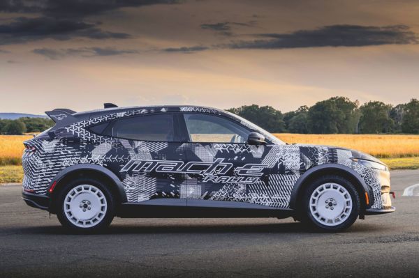 Ehhez képest a bemutatkozás alkalmából a Goodwood ház kertjében lévő aszfaltcsíkon száguldott vele végig Ott Tänak rali-világbajnok és az M-Sport Ford Puma Hybrid Rally1 pilótája. A félreértések elkerülése végett a Rally névvel nem a motorsport-szakágra utalnak, a felnik kivételével nincs onnan származó alkatrész, nem pakolták ki az utasteret, nincs bukókeret, satöbbi. 18 hónap fejlesztőmunkájával a felfüggesztést és az alsó védelmet módosították, illetve az összkerékhajtás elektronikus vezérlését is finomították annak érdekében, hogy szélesebb legyen a Ford Mustang Mach-E Rally felhasználási köre.