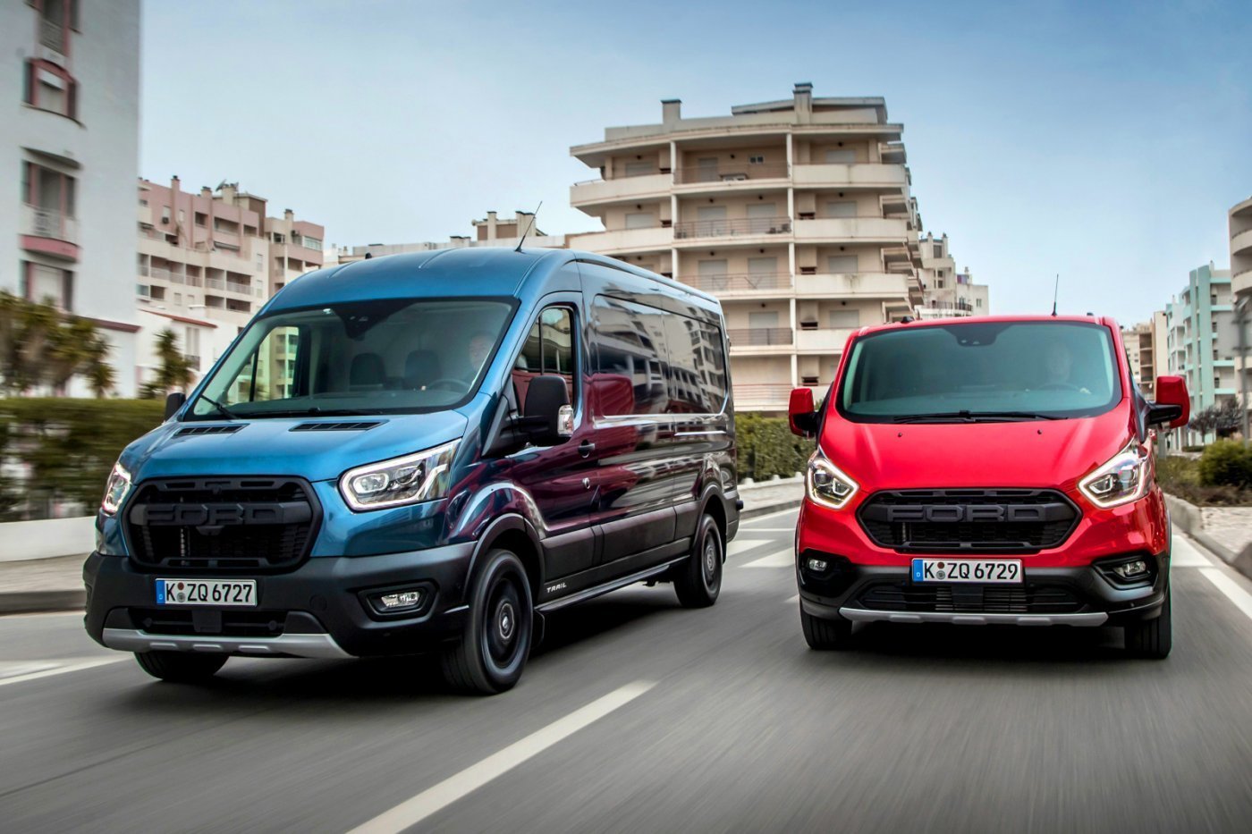 Az eggyel nagyobb Transit esetén a hosszmotoros kivitelből készül a Trail változat, és adják hozzá az eddig is elérhető összkerékhajtást, alapvetően hátul hajt a rendszer, szükség esetén a nyomaték 50%-át tudja előre küldeni a vezérlőegység. Ennél a modellnél széria a könnyen takarítható bőrkárpit, az elektromosan behajtható tükrök, a fűthető szélvédő. A Trail modellek a 2,0 literes EcoBlue dízel 130, 170 vagy 185 lóerős változatával készülnek, a keresztmotoros Customnél extraként 48V-os lágy-hibrid hajtás is választható.