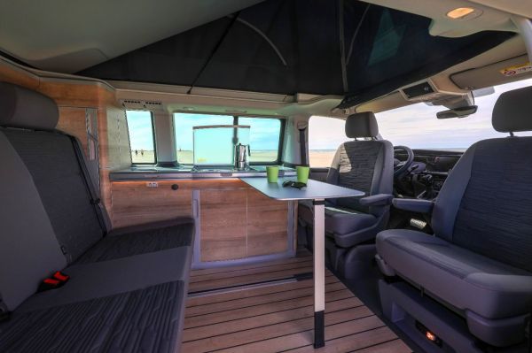 Ahogy eddig, a jövőben is a Transporter összes hajtásával választható lesz a California – ez a 2,0 literes TDI-t jelenti legfeljebb 199 LE teljesítménnyel –, és az összkerékhajtás is elérhető. Alapfelszerelésként kapja a lakóautó az eSim-mel rendelkező fejegységet, a 9,2 colos központi képernyőért és a digitális műszeregységért felárat kell fizetni. Azzal, hogy hidraulikus helyett elektromos a kormányszero, több új vezetőtámogató rendszer jelent meg a kínálatban, például az oldalszél-segéd, a parkolósegéd vagy az utánfutó-segéd.