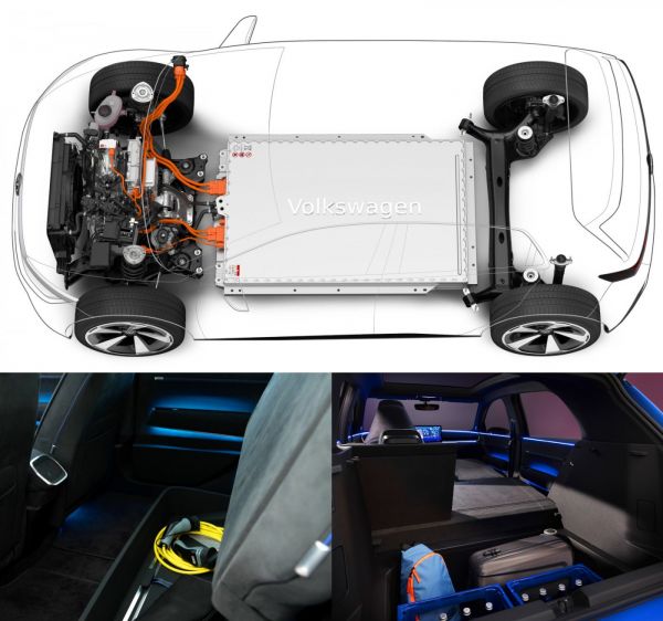 Műszakilag az MEB Entry építőkészlet jelenti az alapot, ennél az érdemi változás, hogy nem hátra, hanem előre építik be a hajtómotort, hátsókerékhajtás nincs, helyette a csomagtér különösen mély, így alaphelyzetben sokkal nagyobb méretű – 490 literes, támladöntés után 1330 liter. A tanulmánynál még a felhajtható hátsó ülőlap alatt is van némi extra tárolóhely, ahol például a töltőkábel elfér, így azt a csomagok kipakolása nélkül is el lehet érni. Érdekes, hogy amíg a ma elérhető MEB-autóknál a hátsó tengelyen dobféket alkalmaznak, az ID.2all hátul is tárcsaféket kapott – igaz, a hatalmas méretű felnik mögött nevetségesen aprónak tűnnek a féktárcsák. A karosszéria hossza 4050 mm, szélessége 1812 mm, magassága 1530 mm és ehhez 2600 mm-es tengelytávolság tartozik – a mai Polo alapterületén Golf-fal összemérhető nagyságú belső teret kínálnak.