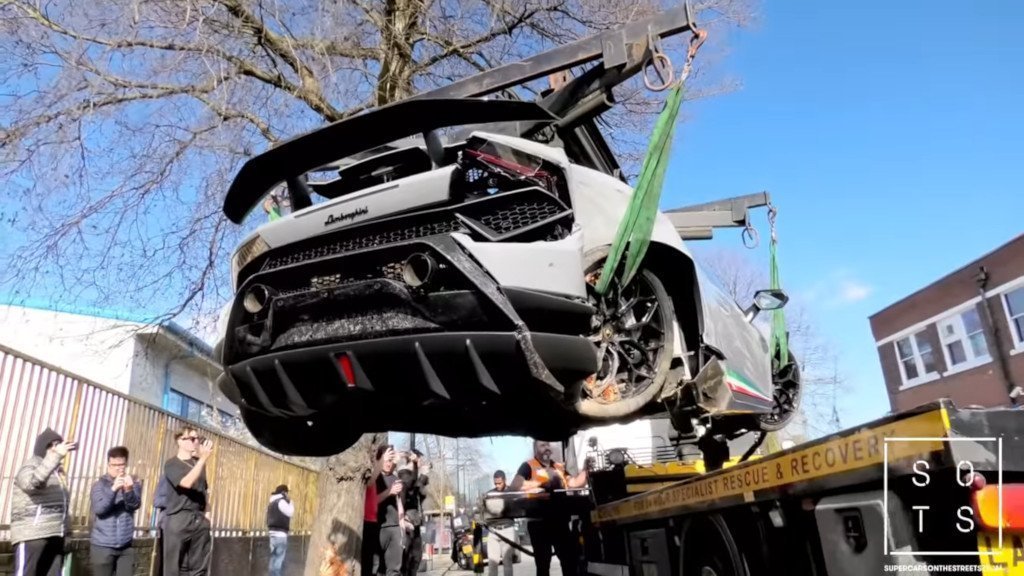 A luxusautók kereskedelmével foglalkozó HR Owen kereskedés vasárnapi Supercar Sunday rendezvényéről távozott volna hatalmas hanggal és gyorsulással a Lamborghini Huracán, de a vezetőjének meghaladta a tudását az egyenes vonalú gyorsítás. Padlógázon veszíti el az uralmát az autó felett, a parkoló autókat centikre kerüli el, majd egy kerítés és egy fa állítja meg az autót – nagy mázlija volt, hogy a hátsó tengelynél, és nem a vezetőajtónál csapódott a fának a Lamborghini. A nagy megrázkódtatásban annyi lélekjelenléte még volt a sofőrnek, hogy levegye az egyedi rendszámot a V10TXT nem is olyan rég még egy Audi R8-ast díszített.