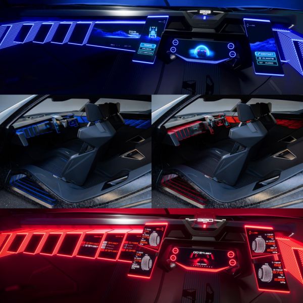 A korábban említett üzemmódok között látható eltérések is vannak, GT-ként kék a belső világítás, és ilyenkor a műszerfalon elhelyezett kijelzők klasszikus érintőképernyőként (is) működnek, tehát segítségükkel vezérelhetőek a kényelmi felszerelések, és amennyire lehet visszahúzódnak, hogy tágas térérzetet biztosítsanak. R-módba átkapcsolva a Nissan Hyper Force megvilágítása vörösre vált, a képernyőkön már a versenypályán fontos információk jelennek meg, és azok közelebb is húzódnak a sofőrhöz, hogy ezzel is segítsék a tájékozódást. A lézeres letapogatóval is rendelkező vezetőtámogató rendszer nem csak a közúton, de a versenypályán is képes a beavatkozásra, bár azt már nem fejtették ki, hogy ez mit is jelent.