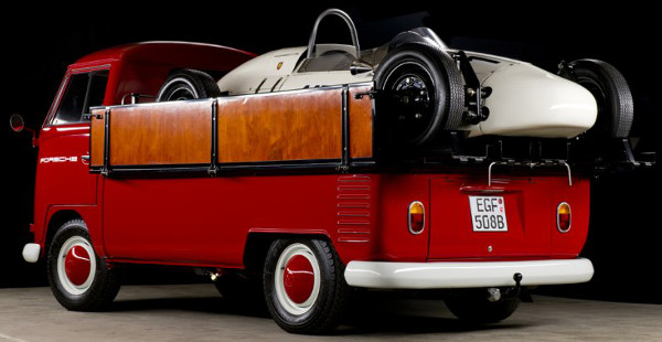 Ami azonban igazán különlegessé teszi a Porsche Formula V versenyautót, az az eredeti szállítójármű mintájára készült Volkswagen T1-es pickup szállítójármű. Az összes, a Porsche gyár által használt példány balesetben megsemmisült vagy porrá rohadt az évek során, ezért teljesen újat kellett készíteni. Egy, a megfelelő hónapban gyártott roncsot sikerült megvásárolni, amelyet aztán teljes felújítás követett. Az eredetileg galambkék színű autót azonban nem egyszerűen felújították, hanem alaposan át is építették.