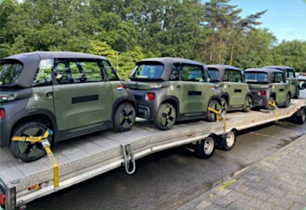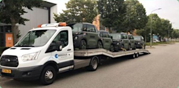 Az autókat most szállította le a Doornspijkben található Opel márkakereskedés, a megrendelő kérésének megfelelően matt zöld fólia-bevonatot is kaptak az autók, amelyek mind felfértek egy trélerre.