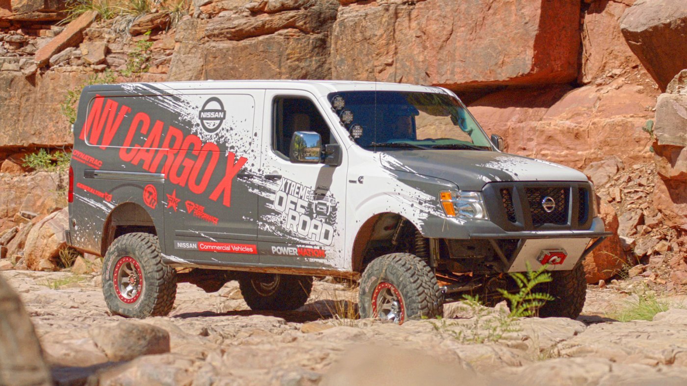 Egy Titan pickupból származik az 5,0 literes V8-as Cummins turbódízel és az összkerekes hajtáslánc, megszabadultak a független első hídtól, amelynek a helyére egy merevtengely került. A karosszéria 56 centire van a talajtól, hogy a 37 colos terepjáró kerekek elférjenek. A szorult helyzetekre gondolva az egyedi első lökhárítóban egy csörlőt is elhelyeztek. A Nissan NV Cargo X rakterében a teljes értékű pótkerék mellett szerszámok és hegesztőberendezés is található, hiszen ezt egy olyan járműnek szánták, amellyel a terepen elakadt és sérült járműveknek lehet akár műszaki segítséget nyújtani.