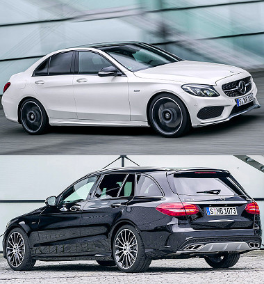 Aki még ennél is fürgébb C-osztályra vágyik, annak a C450 AMG Sport lehet a megoldás. A motortérben itt egy 3,0 literes biturbó V6-os dolgozik 370 LE/518 Nm teljesítménnyel. Alapfelszerelés ennél a modellnél az összkerékhajtás, a jobb tapadás 4,9 (kombi 5,0) másodperces 100-as sprintet eredményez. Amíg a hibridnél csak az elektromos töltőcsatlakozás árulkodik a technikáról, az AMG Sport változat sokkal látványosabb megjelenést kap króm helyett fényes fekete kiegészítőkkel.