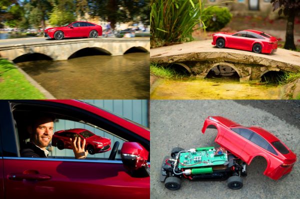Az összkerékhajtású alapra egyedi Mirai karosszériát tettek rá, amelyet aztán az eredeti Scarlet Flare vörös színére fényeztek. A nagynyomású hidrogéngázzal tölthető távirányítós autó a hagyományos elemes változatnál kétszer nagyobb hatótávolságra képes, a tankolást a cserélhető hidrogéntartályok könnyítik meg.