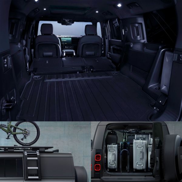 Azok számára készül a Land Rover Defender 130 Outbound nevű változata, akik gyakran túráznak autójukkal, és ilyenkor sok mindent szállítanak. A csomagtér padlóját strapabíró és könnyen takarítható gumiszőnyeg borítja (van a fényezett lökhárítót védő, kihajtható szőnyeg is), nem rendelhető a 3. üléssor, így alapesetben 1329 literes a raktér, ami a hátsó ülések ledöntésével 2516 literesre bővíthető. Ha itt nem férne el a kívánt rakomány – kerékpár, kajak, mászófelszerelés, satöbbi –, akkor a tetőcsomagtartóra vagy utánfutóra is számíthat a tulajdonos.