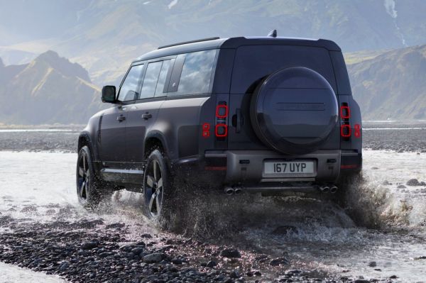 A Defender 130 másik újdonsága, hogy mostantól kezdve az 5,0 literes kompresszoros V8-assal is választható. Az 500 LE/610 Nm teljesítményű erőforrással 5,7 másodperc alatt gyorsul 100 km/órás tempóra a szabadidő-autó, amely akár 8 üléses (3+3+2) utastérrel is elérhető. A V8-as erőforrásra 4 darab kerek kipufogóvégződés utal, no meg az elengedhetetlen jelvények.