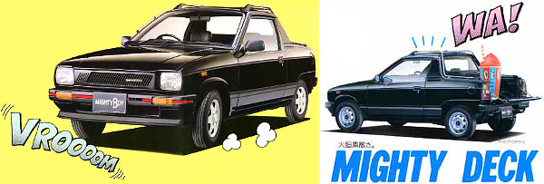 Egykor Mighty Boy néven kínálta a Suzuki az Alto alapján készített platót kisteherautót, amely méretei okán kevésbé volt praktikus (3,2 méteres hossz, 550 köbcentis, 31 lóerős benzinmotor), de mára egyértelműen kultikus járművé nemesedett. A Mighty Boy nevű pickup platóját nevezték el viccesen Mighty Deck-nek, azaz hatalmas platónak: a raktér szélessége 1170 mm, hossza 660 mm és 365 mm a magasság.