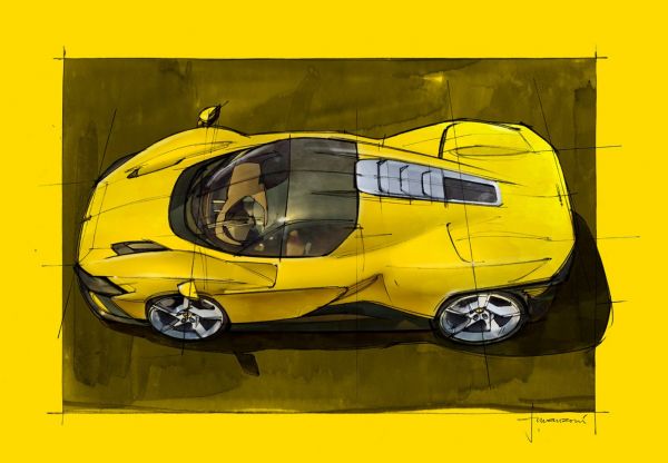 Flavio Manzoni és csapata számos legendás versenyautó-prototípust megidézett a Daytona SP3 megrajzolásakor, az orr kialakításával az 512 S, 712 Can-Am és 312 P típusokra utalnak, a karosszéria domborulataival az 512 S-t idézik, a hátsó részen a 330 P4-re utaló légterelőket lehet látni. A nyolcvanas évekre utalnak a bukólámpa újraértelmezésével, azaz hogy szükség esetén visszahúzódik az első burkolat alá a fényszóró felső részét borító takarólemez. Rendhagyó az aerodinamikai csomag, hiszen csak passzív elemeket használnak, azaz nincsenek aktív légterelők, cserében vannak trükkös megoldások, mint az ajtókon keresztül vezetett légcsatornák. Sokat dolgoztak a hűtőrendszeren, hogy javítsák a kocsi elején átmenő levegő áramlását, a motor nagyon rövid csatornán keresztül szívja a levegőt.