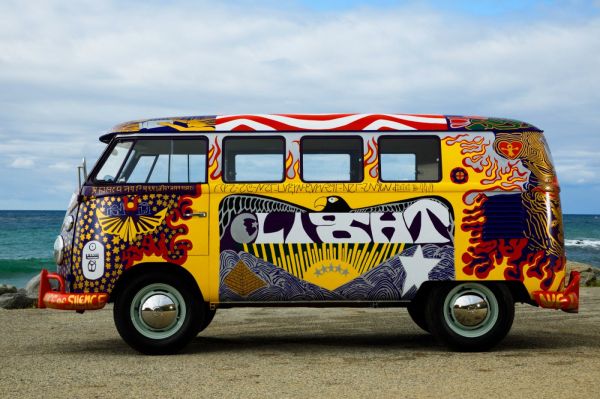 Dr. Bob Hieronimus nem sokkal a Woodstock Art and Music Fair nevű rendezvény előtt festette meg a tulajdonos felkérésére az 1963-as évjáratú VW buszt, a „Fény” nevű jármű zenekarszállítónak indult, és a fesztivál jelképe lett.