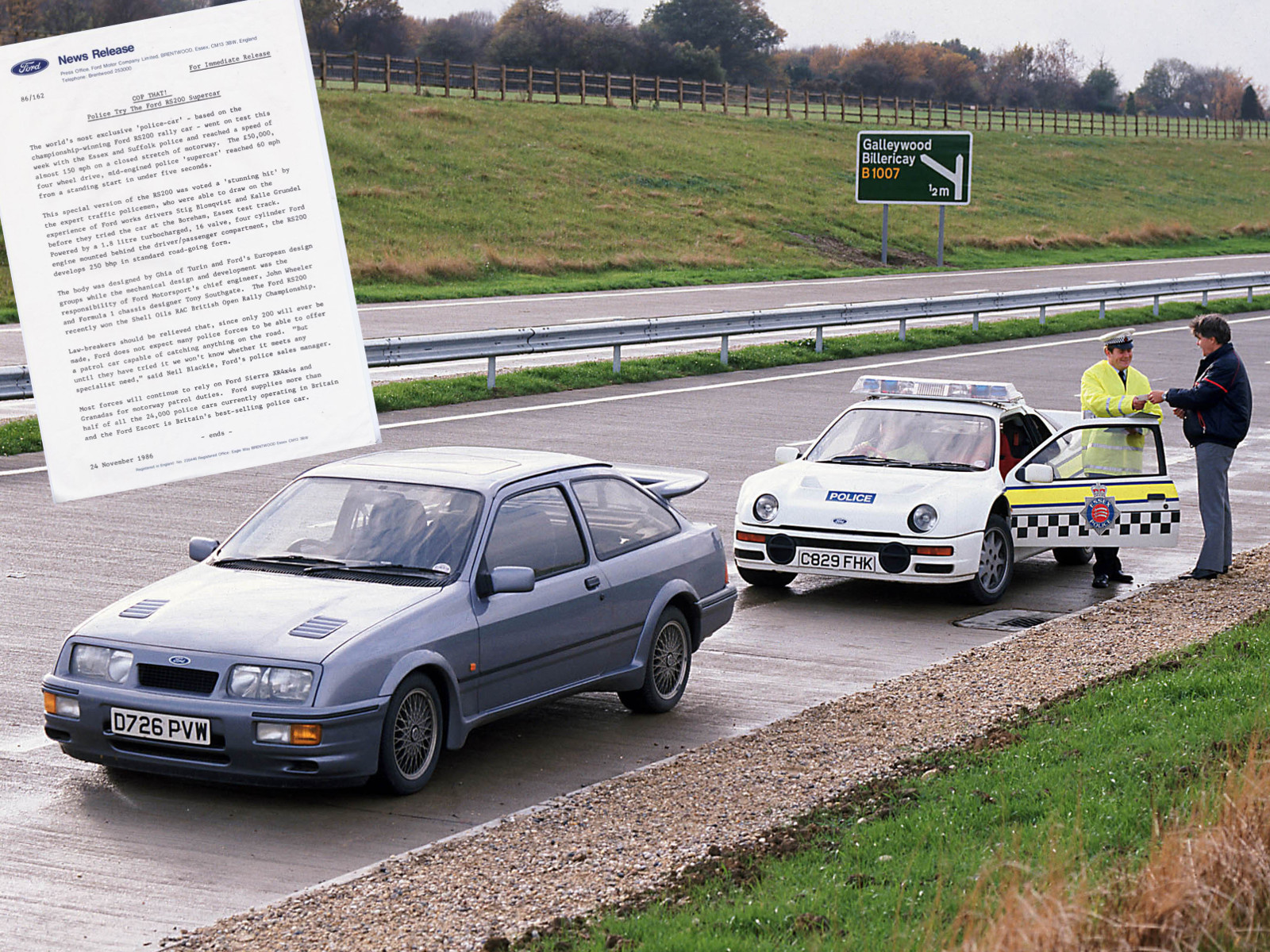 Egy 30 évvel ezelőtti sajtófotót idézett fel a Ford Nagy-Britanniában, akkor épp az volt a hír, hogy az RS200-as típus tesztelését megkezdte a rendőrség, ebből az alkalomból készített fényképen egy Sierra Cosworth volt az „áldozat”.