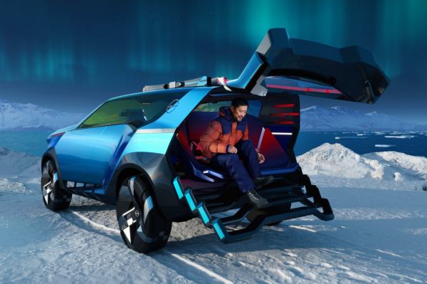 Egy héttel ezelőtt a városi élet kihívásaira szabott villanyautó-tanulmányt mutatott meg a Nissan Hyper Urban néven, most pedig itt a folytatás, a természetjáróknak készített Hyper Adventure tanulmány. Ennél a márka e-4ORCE 2 hajtómotoros összkerékhajtása gondoskodik a biztos előrejutásról, amit kiegészítenek beépített, gombnyomásra előbújó hóláncokkal is – ezek csúszós talajon, tehát sárban is segíthetnek.