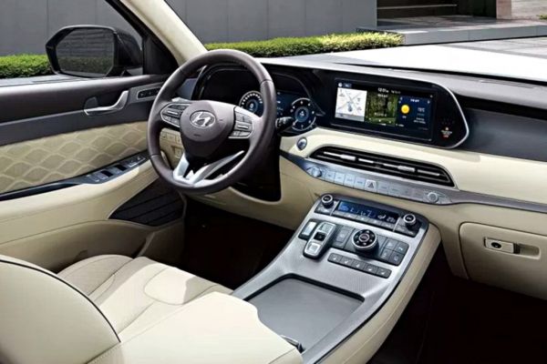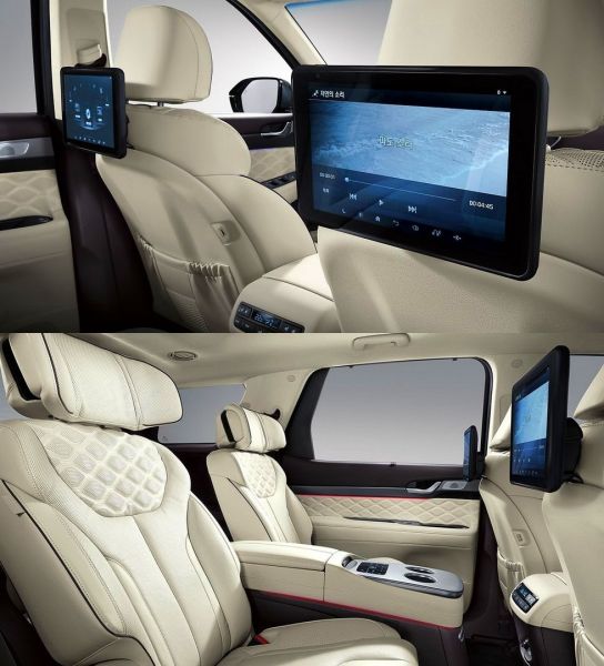 Nappa-bőrrel kárpitozzák az utasteret, 12,3 colos képátlójú monitor kerül a kormány mögé – ez az első korai autó ekkora vetített műszeregységgel –, a beszélgetést megkönnyítő 7 mikrofonos hangrendszer kerül a fedélzetre, az első ülések hátára szerelt multimédia rendszer is rendelhető. Utóbbi alapáron jár a Hyundai Palisade Calligraphy VIP-hez, amelynek hátsó részébe két hatalmas fotelt építenek, amelyek között széles könyöklő rejt temperált pohártartót és egy érintőképernyőt, amellyel a könyöklő aljába rejtett ionizátor – és a szórakoztatórendszer – vezérelhető. A fotelek fejtámláiban külön hangszórók vannak, a vezetéknélküli telefontölő az ajtókárpitokra került.