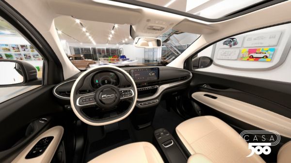 A Virtual Casa 500 digitális környezetében mindent egy kattintásnyira találunk. A tizenegy tematikus terület sorában ott a „The Legacy”, a „Made of Italy”, a „New 500 One Offs”, a „Diary of an Icon”. Bepillanthatunk az „A Journey through 3 Generations”, a „New 500 Experience”, a „500 Design Story”, az „A Story of Social Relevance”, a „The Future Starts Here”, az „500 Vintage Vibes”, az „Open for Change” termeibe. Természetesen az új Fiat 500 debütálására készített három egyedi autót, az Armani, Bvlgari és Kartell egyedi autókat is meg lehet ismerni a szériaváltozat mellett.