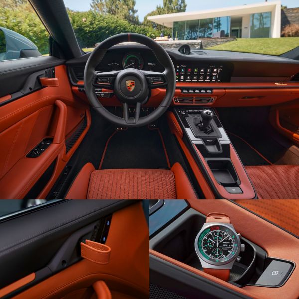 Az utastérben a fordulatszámmérő és a stopperóra zöld számlapot kap, alapáron karbon kagylóüléseket adnak, felár nélküli extraként kérhető az állítható sportülés. Népszerű extra lesz várhatóan a hetvenes évekbeli versenyautók megjelenését felidéző Heritage Design csomag, amelyhez a Shoreblue Metallic nevű kék színt keverték ki, amelyet Ceramica színű felnikkel kombinálnak, az ügyfél 0-99 közötti rajtszámot kérhet az ajtókra. A márkajelzéseket a korabeli Porsche-pajzsra cserélik, az ülés középső részét retró szövettel kárpitozzák. A másik várhatóan népszerű Porsche 911 S/T extra a passzoló kronográf lesz, amelynél tömegcsökkentés okán nem kezelik a titán házat, a szíj az üléskárpithoz passzol, az óra lendkereke a 911 S/T magnézium felnijét idézi.