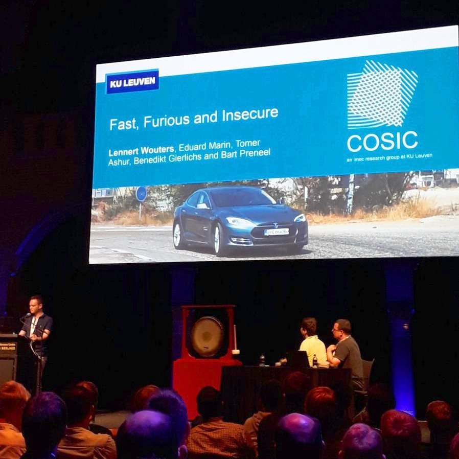 A Leuveni Katolikus Egyetemen működő Computer Security and Industrial Cryptography research group (COSIC) nevű csoport demonstrálja, hogyan is lehet a kulcsnélküli ajtónyitást és motorindítást másodpercek alatt kijátszani. Egy Tesla Model S látható a videón, de ugyanezt a Pektron nevű cég által készített rendszert használja a McLaren és a Triumph is – általános vélemény, hogy ezt a legkönnyebb kijátszani. A Tesla szoftverfrissítés keretében úgy orvosolta a problémát, hogy számkódot kér a motorindításhoz (az ajtó továbbra is nyitható), a McLaren pedig olyan tasakot postáz ki ügyfeleinek, amely elszigeteli a jeladós kulcsot a rádióhullámok elől.
