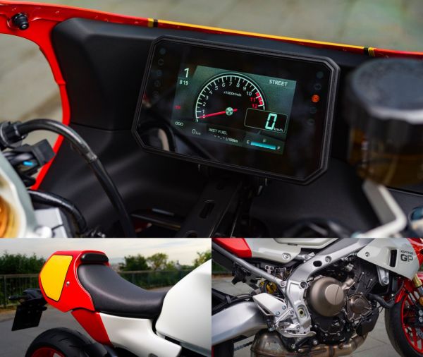 A Yamaha XSR900 pár csavar és burkolat segítségével alakul át XSR900GP-vé, hiszen az YZR500-as verseny-motorkerékpárt idéző első- és hátsó burkolat 1-1 csavar oldásával eltávolítható – anno hasonló módon rögzítették a burkolatokat a versenygépeken, ezért vették át ezt a megoldást. A piros-fehér fényezéssel és a sárga számlapokkal arra a konkrét motorkerékpárra utalnak, amellyel Wayne Rainey anno világbajnok lett.