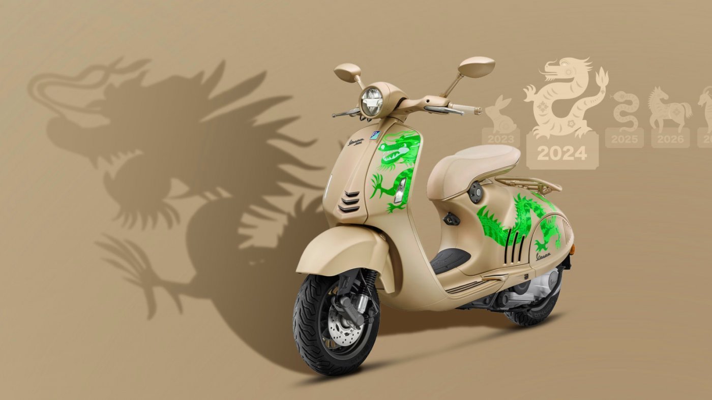 Folyamatosan készíti a limitált szériás modelleket a Vespa, most épp a 946 Dragon van soron, amellyel a kínai horoszkóp szerint február 10-én kezdődő Sárkány évét üdvözlik. Ennél egyedi arany fényezést és zölddel festett sárkányt adnak, illetve rögtön passzoló ruhát is: a kabát hátulján nagyban, elején kicsiben látható a zöld sárkány, az ujjakat egyedi grafika díszíti.