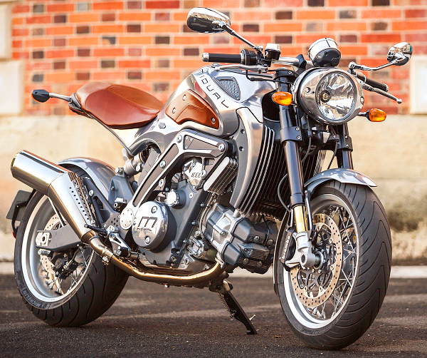 Az Olivier és Francois Midy által elkészített motorkerékpár öntött alumínium vázzal és 25 fokos szögben beépített, saját fejlesztésű, kéthengeres boxerral rendelkezik. Már kezdettől fogva az volt a szándéka az alkotóknak, hogy rengeteg teret adjanak az egyedi karakter kialakításához, ezért sok a (választható színű) bőr borítás, a vázba integrált 14 literes tank tetején lévő valódi fa panelt is teleszórták műszerekkel meg egy apró LCD kijelzővel.