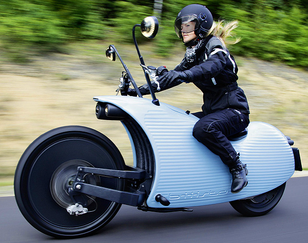 A konstruktőrök az egyszerűség kedvéért a két kerék közötti egyenes vonalba sűrítették a technikát, itt találhatóak a rugóstagok. Középen van az akkumulátor, a hajtómotor a szabályzóelektronikával együtt a hátsó kerékagyban található. Az állandó mágneses szinkronmotor teljesítménye 14 lóerő, a 80 km/órás tempót 4 másodperc alatt éri el a motorkerékpár, a csúcssebesség elektronikusan korlátozott 120 km/óra. A gép egyébként 43 fokban dönthető, a jó manőverezhetőséget még a mindössze 35 centi magasan lévő tömegközéppont is segíti.