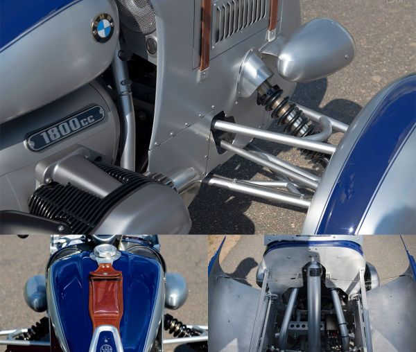 Mivel a 2 első kerék miatt nem motorkerékpárként közlekedik a jármű, azaz nem dől be kanyarban, autógumikat használnak, az első tengelyre például 165/65 R15 méretű abroncsokat szerelnek Audi A3-as felnikre, a 300 mm átmérőjű féktárcsák a Nissin termékei, hátul egy 194/45 R17 méretű abroncsot használnak. A kormányt kiszélesítették, hogy a vezető jobban tudja kontrollálni a járművet. Több alkatrész is Harley-Davidson vagy az amerikai márka számára gyártott elem, a fényszórók a V-Rodról származnak. A tankra bőrből készült okostelefon-tartót helyeztek, amely Bluetooth kapcsolaton keresztül tudja használni a beépített hangszórókat.