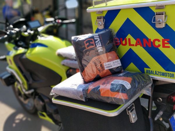 Az EuroMotor Kft. dolgozói pontosan tudják, hogy a motorost érő hideg esőcseppek és az autókról felverődő víz nem csupán kellemetlenséget okoznak a két keréken munkájukat végző orvosoknak. A hideg nedvesség miatt átázó motorosok végtagjai merevebbé, pontatlanabbá válnak, a koncentráció csökken, a reakcióidő pedig növekszik. A prémium minőségű motorkerékpáros felszereléseket forgalmazó EuroMotornál ezért úgy döntöttek, hogy a Magyar Mentőmotor Alapítvány minden szolgálatot teljesítő tagjának egy-egy minőségi, kifejezetten a motorozáshoz fejlesztett kétrészes Hevik esőruhát adományoznak. A speciális igényeket kielégítő esőruhák kialakításukban, varrásukban és anyagukban megfelelnek az esős időszak kihívásainak.