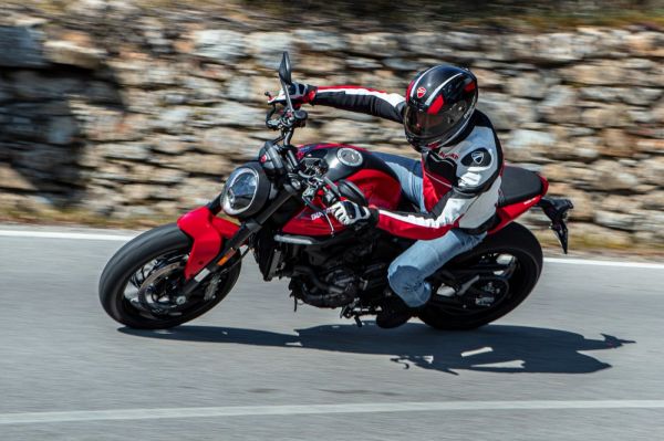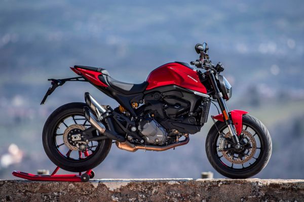 Sok-sok különleges gépet köszönhetünk a Ducatinak, de ha van típus, amely alapjaiban változtatta meg a márkáról kialakult képet, az az 1993-ban debütált Monster. Miguel Angel Galluzzi, a legendás fődizájner minimalista alkotása akkora siker lett, hogy 2005-re a Ducati valaha legyártott motorkerékpárjainak felét már a Monsterek tették ki. Bár az évek során természetesen modernizálták a sorozatot, az alapkoncepció mit sem változott, az L2-es motorfelépítéshez és a jellegzetes térhálós vázhoz 27 éven át hűek maradtak! Az új nemzedék esetében azonban megtört ez a hagyomány, ugyanis a Panigalékhoz hasonló vázra épül az újdonság: a konstrukció első része tisztán alumíniumból készül, amihez üvegszálas erősítésű kompozit-anyagból készítettek segédvázat, a motorblokk pedig természetesen teherviselő elem. A trellis váztól való búcsúzás nagy vihart kavart, Olaszországban egy rajongói klub például petíciót adott át a Ducatinak, hogy a kifutó modell gyártását folytassák! Nos, az új felépítés előnyei, például a tömegcsökkentésre gyakorolt jótékony hatásai vitathatatlanok, a 18 kg-os mínusz azt jelenti, hogy a nóvum csak 166 kg-ot nyom a mérlegen. Ugyanakkor az is biztos, hogy a Monster elveszítette egyik védjegyét! Ugyan a fényszóró és a sziluett őrzi a legendás elődök vonásait, inkább az MV Agusta Brutalét juttatja eszünkbe, mintsem saját felmenőit. Ebben az is szerepet játszik, hogy a jellegzetes leömlő csőkígyó is jóval visszafogottabb, a formaterv pedig sokkal lágyabb, mint eddig. A vezetői pozíciót alaposan megváltoztatták, a kormány 7 centivel közelebb került az üléshez, és a tankot jóval keskenyebbre szabták.