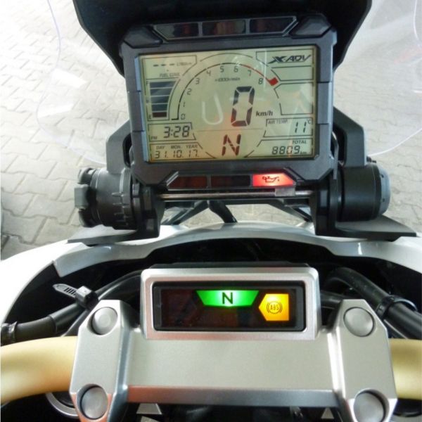 A műszerfal nagyon informatív, még a levegő hőmérsékletét is mutatja. Nem tudom miért, talán azért, hogy ha leveszem a dzsekit, akkor fázom, vagy nem? Persze tudom, a hidegebb úttesten nem tapad úgy a gumi. Amúgy minden szükséges info megvan, még a behúzott parkolóféket is jelzi.