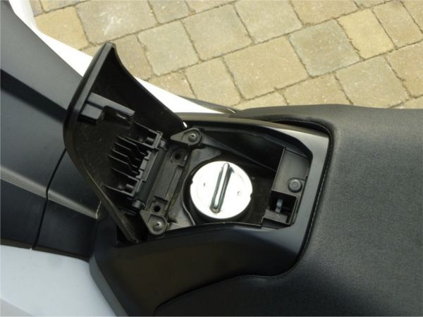 Bár az ülést gázrugó emeli (!) de lötyög, nem mindig illeszkedik a helyére lecsukásnál. Az ülés alatti csomagtartó (tehát robogó?) egy kis sisakot nyel el, az én nagy, zárt sisakommal meg sem közelítettem. Itt van egyébként a szerszámkészlet, és a 12 wattal terhelhető 12 voltos csatlakozó is.
