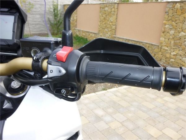 A kis képernyőn jelzi, hogy megtalálta a zsebemben a kulcsot, egyidejűleg diszkrét kék fénygyűrű világít a főkapcsoló körül. A kapcsolót jobbra fordítva indítható a motor, egészen balra fordítva elektromos kormányzár, egyenes állásában nyitható a tankolónyílás fedele és az ülés a megfelelő gombok megnyomásával. Ez az a pont, ahol az egyébként szépen, gondosan dizájnolt motorkerékpár (ez feltétlenül ráillik, a kategóriát mindenki maga döntse el) mintha egy kicsit hanyagul lenne megcsinálva.