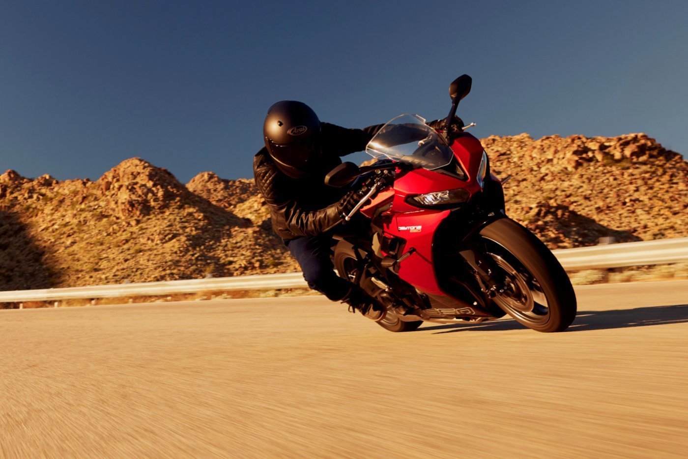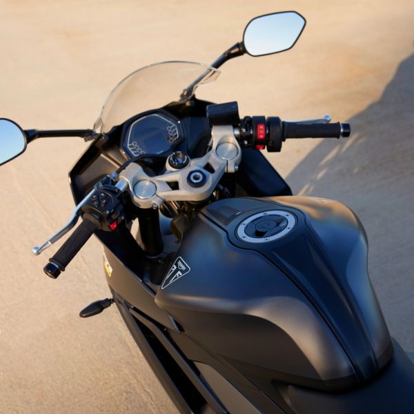 Lehet, hogy pár lóerővel gyengébb a fő vetélytársaknál, de a Triumph szerint azokhoz képest sokkal hosszabb, 16 000 km-es szervizintervallummal mégis az ő gépük lesz sok vásárló választása. Az angolok Showa rugóstagokat, elöl 310, hátul 200 mm átmérőjűek a féktárcsák, amelyek 4 illetve 1 dugattyús nyergek szorítanak, a vezető 3 üzemmód – Sport, Road és Rain – közül választhat. Erős fékezéskor az elektronika automatikusan aktiválja a vészvillogót. A menetkész tömeg 201 kg, az ülésmagasság alapesetben 810 mm, de alacsony ülés opcióval ez 785 mm-re csökken. A Triumph Daytona 660-asnak is lesz A2-es jogosítvánnyal vezethető változata.