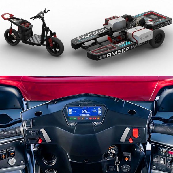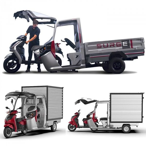 A világ legnagyobb motorkerékpár-gyártója az indiai Hero MotorCorp, amelynek a leányvállalata a Surge nevű startup, amely olyan villanymotoros robogót mutatott be az S32-essel, ami befogható riksa-vontatónak is. A konstruktőrök állítása szerint 3 perc alatt végezhető el a Surge S32 átalakítása, amely során fel kell hajtani a szélvédőt, be kell farolni a robogóval a vezetőállásba, fel kell hajtani a robogó hátsó kerekét, majd csatlakoztatni kell az elektronikát, és máris indulhat az 500 kg terhelhetőségű 3 kerekű riksa – illetve visszafelé ugyanezeket a lépéseket kell eljátszani.